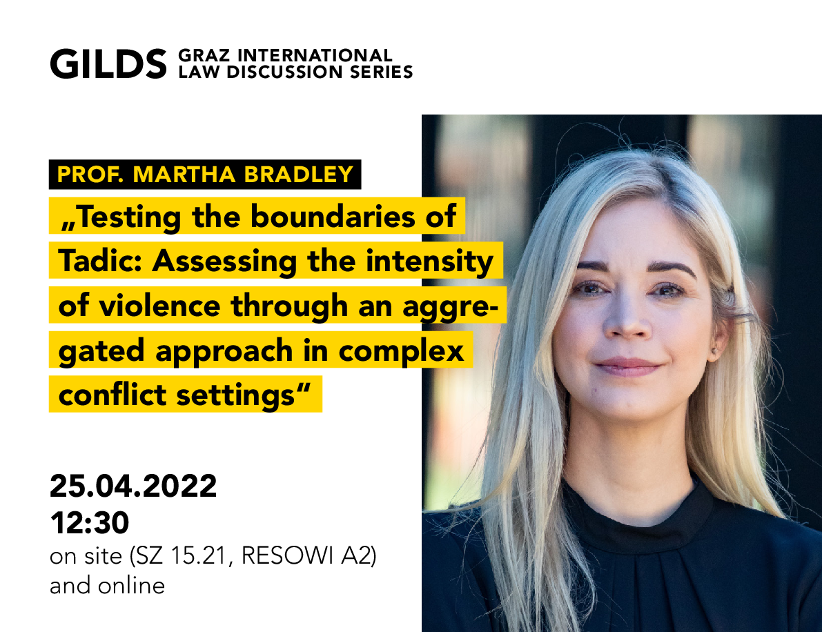 Die Anwendbarkeit des humanitären Völkerrechts in komplexen Konflikten, in denen bewaffnete Gruppen Seite an Seite operieren, erfordert eine Abkehr vom traditionellen bilateralen Ansatz zur Beurteilung der Intensität. Stattdessen sollte das Kriterium der Intensität auf kollektiver Basis betrachtet werden. In Prof. Bradleys Vortrag soll festgestellt werden, ob die Tadic-Formel die Methode zur Beurteilung des Begriffs der Intensität auf den bilateralen Ansatz einschränkt. Dabei werden die gerichtliche Praxis, die für die Annahme dieses Ansatzes spricht, sowie wissenschaftliche Überlegungen, die den vorgeschlagenen Inhalt für die Annahme eines aggregierten Beurteilungsansatzes darlegen, untersucht.